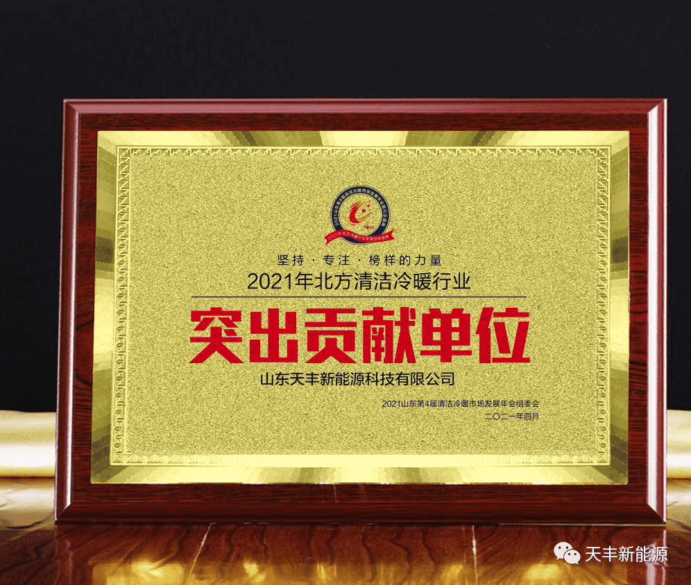 在大會特別設置的“2021北方清潔冷暖行業榮譽授牌儀式”版塊,天豐新能源公司榮獲“2021北方清潔冷暖行業突出貢獻單位”榮譽授牌、“2021北方清潔冷暖行業太陽能采暖精品工程”榮譽授牌,天豐新能源總經理張斌被評為“2021北方清潔冷暖行業突出貢獻人物”。